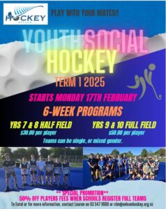 2025 Youth Social Hockey (Yrs 7&8 & Yrs 9&10) – Term 1, 2025 (Monday 17th February to 24th March)