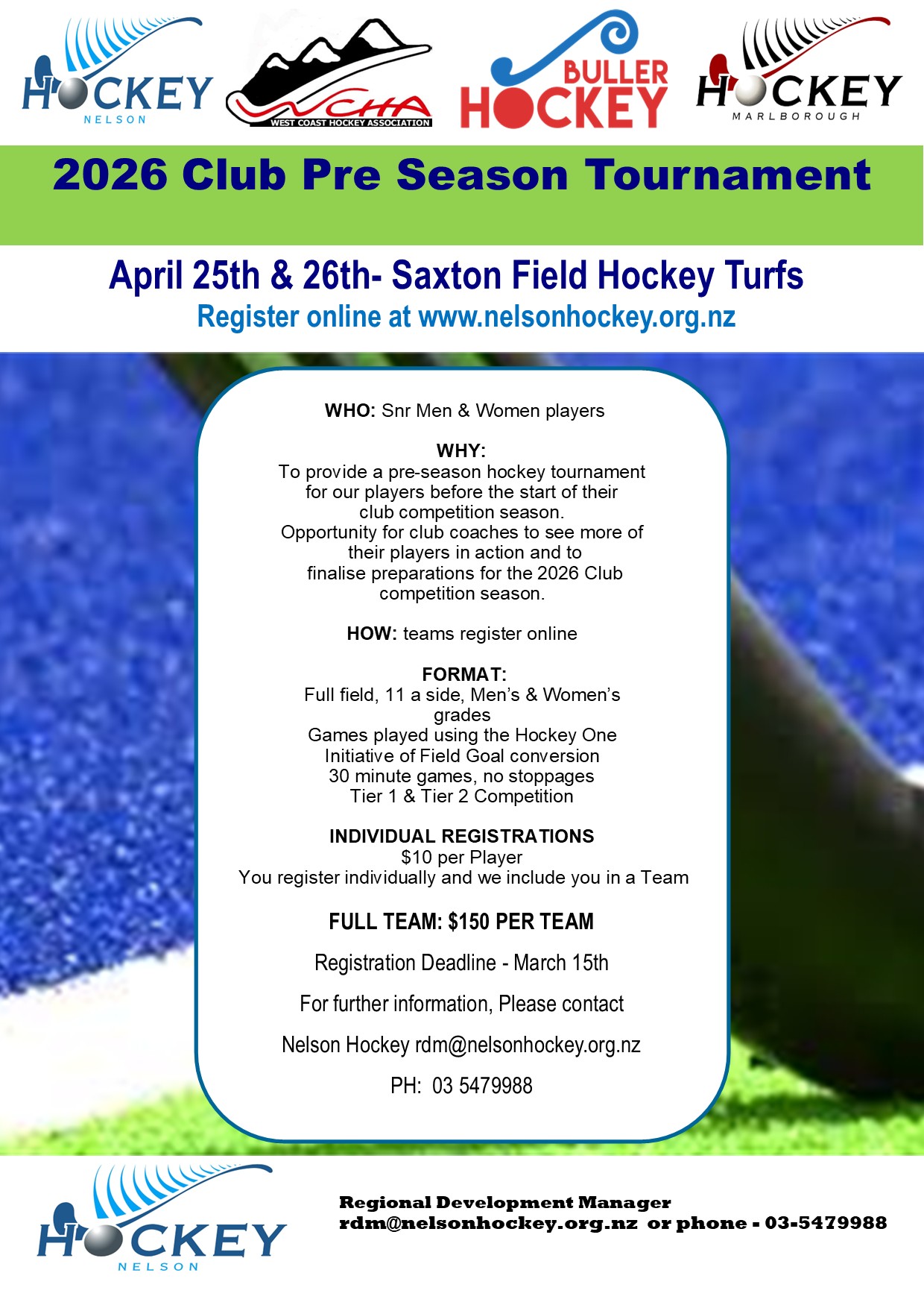 🏑 U14 Pre‑Season Festival – Updated Draw Announcement 🏑 Following the withdrawal of the Buller Hockey U14 Boys team, Hockey Nelson has just released a revised draw for the upcoming U14 Boys & Girls Pre‑Season Festival. We appreciate everyone’s flexibility…