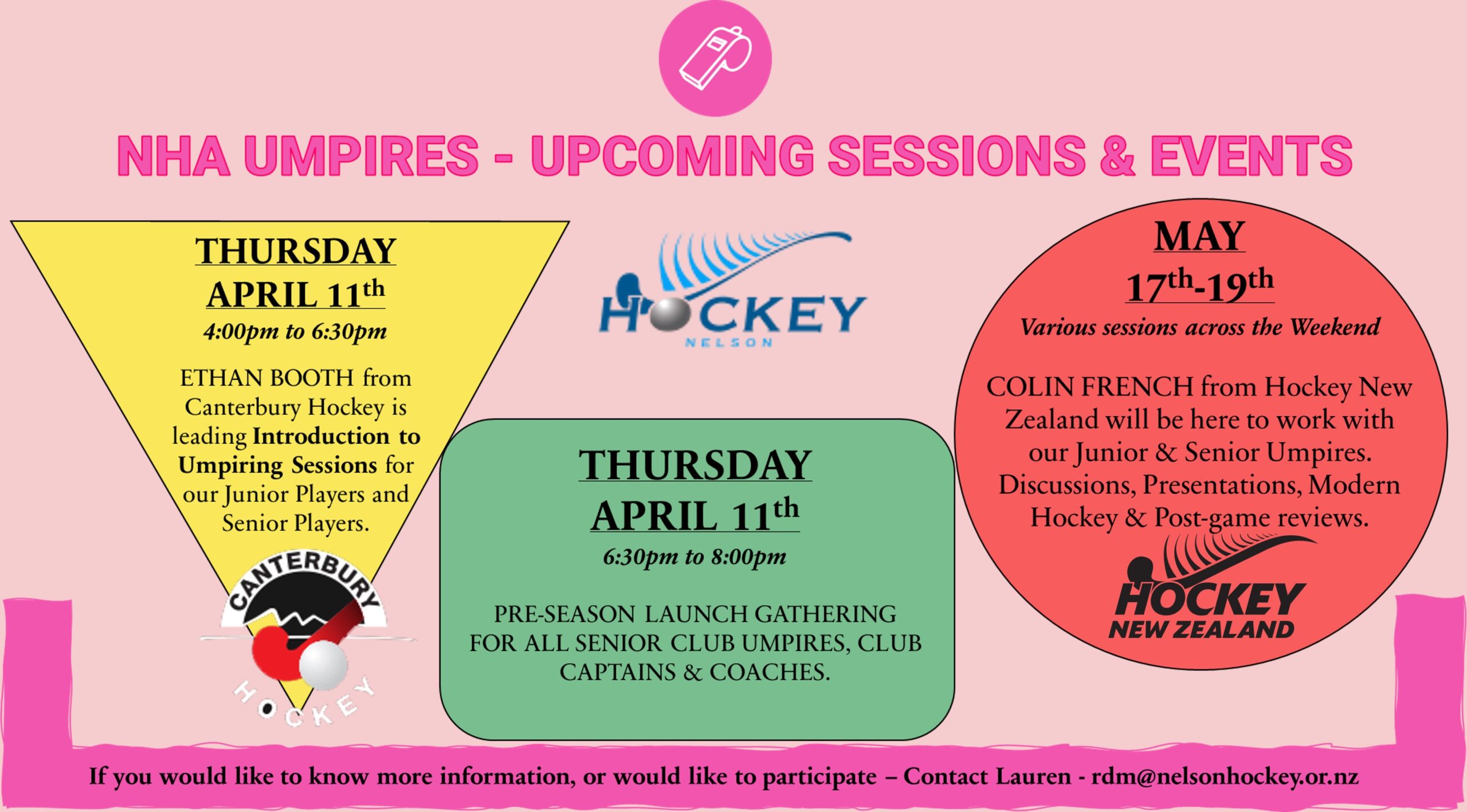 Please contact NHA RDM Lauren Hutton rdm@nelsonhockey.org.nz for any extra information you may need.